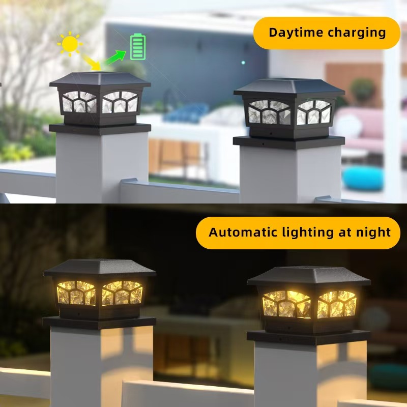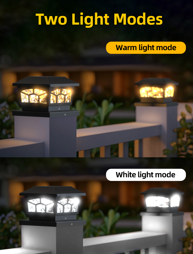 Detaljerna för vår Dual Mode Solar Post Cap Light Solar Garden Light:
